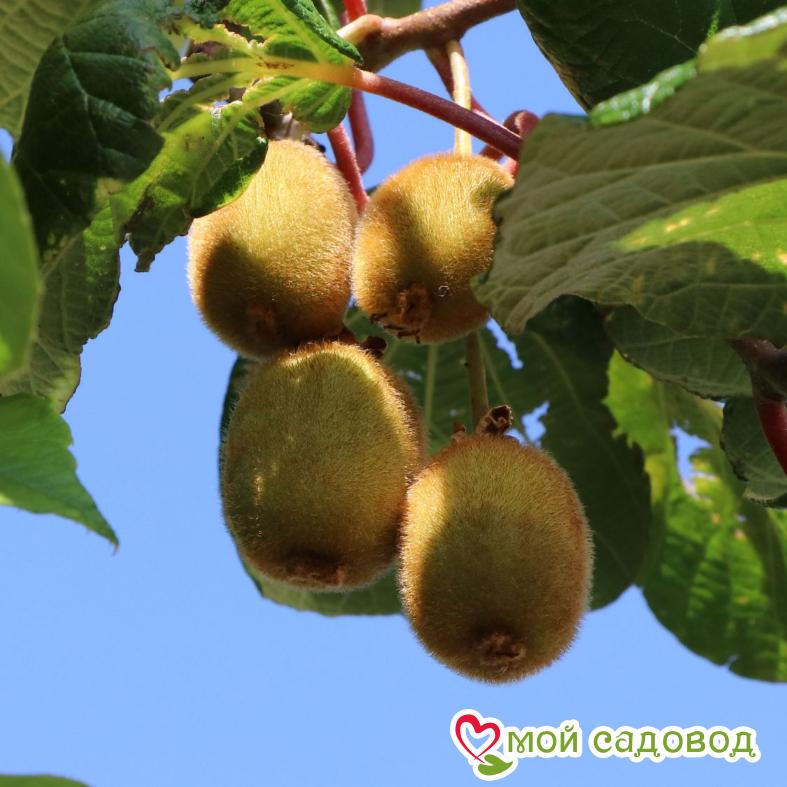 Актинидия деликатесная — невысокая, до 9 м., лиана либо вьющийся кустарник. Для роста и полноценного развития необходима опора. Плоды этого растения, киви, хорошо известны каждому современному человеку. Они значительно крупнее, чем у других видов, до 6–7 см. в диаметре, округлые или вытянутые, зеленые или коричневые. Мякоть зеленоватая, беловатая или бурая, со множеством темно-фиолетовых или черных семян.